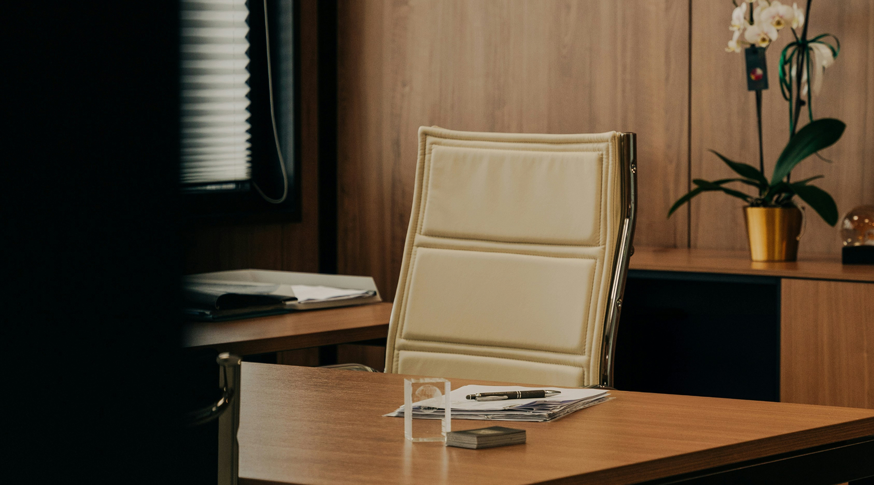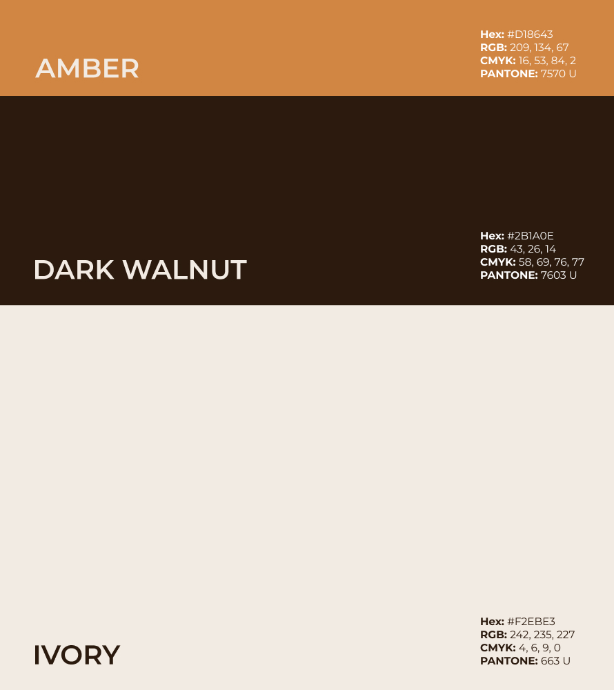 This positioning informed the visual identity, which balances structure with warmth. The logo adopts a minimal, geometric form that conveys control and refinement, while the colour palette introduces depth and distinction through walnut, ivory, and amber tones. The typographic system combines contemporary precision with timeless readability, ensuring consistency across all applications.