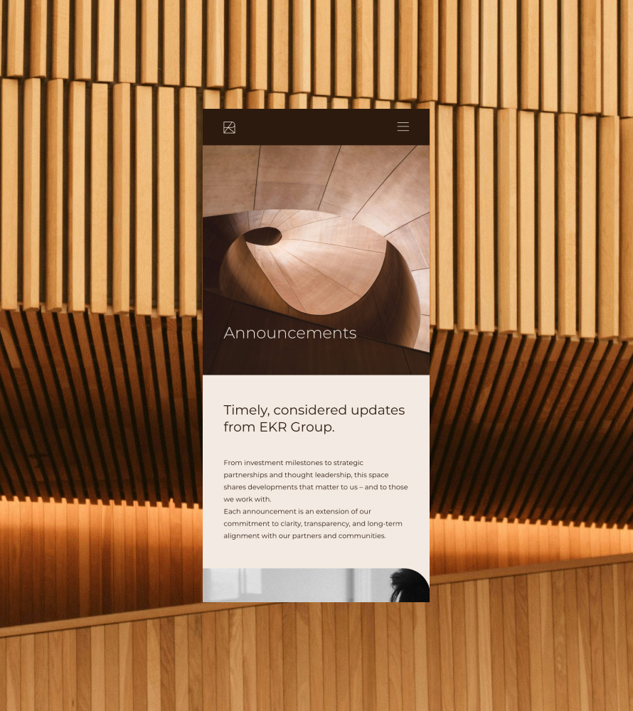 The new identity and platform position EKR Group as a considered and future-facing investment group, capable of engaging new markets and opportunities without compromising its legacy. It transforms a traditionally private structure into a brand that is clear in its intent, confident in its direction, and designed to support long-term growth.