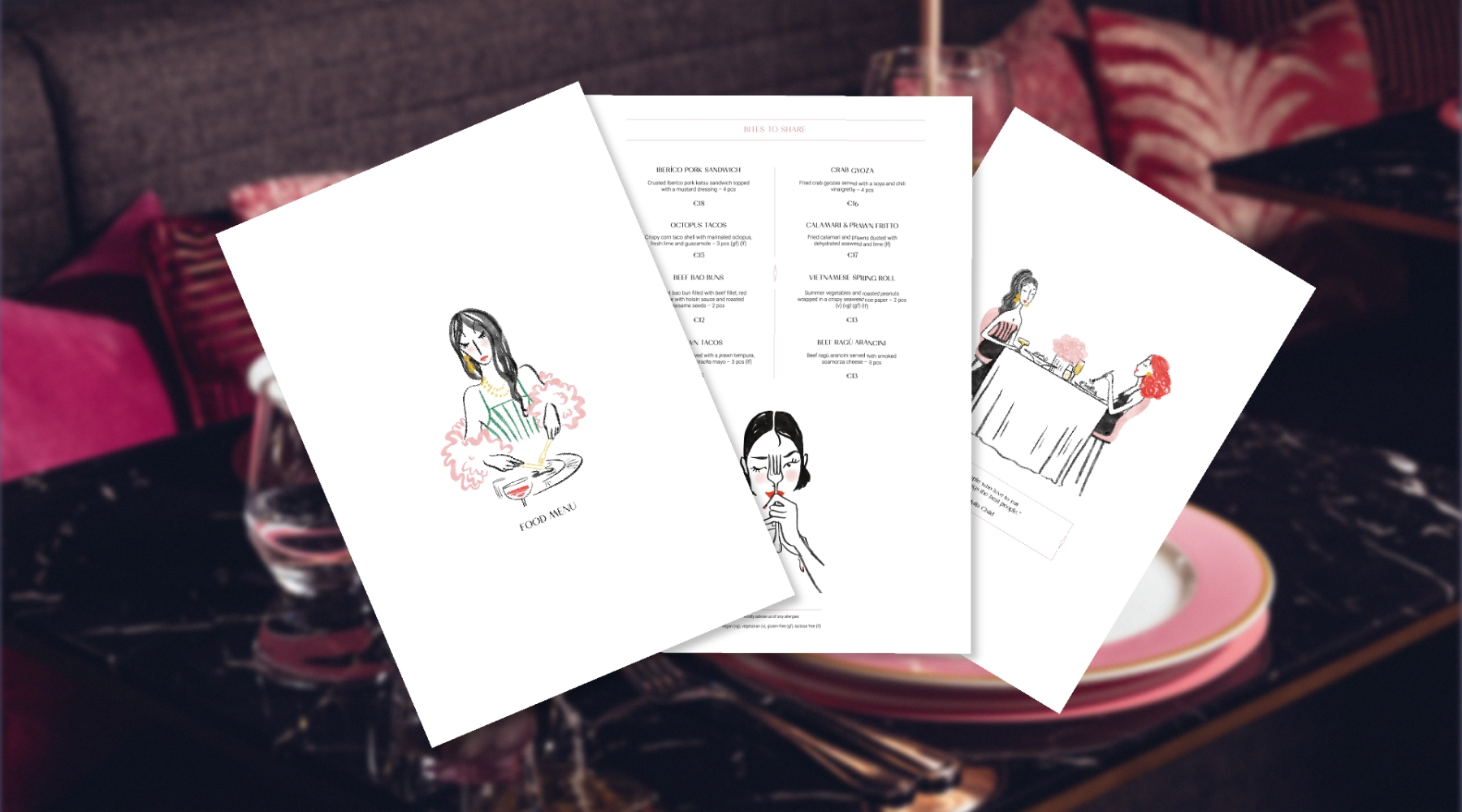 Our design team meticulously delved into every aspect of the menus design, carefully considering paper selection, board thickness, foil application, typography sizing, colour choices, placement of custom illustrations, content and pricing, as well as strategically positioning special dishes and key items.
