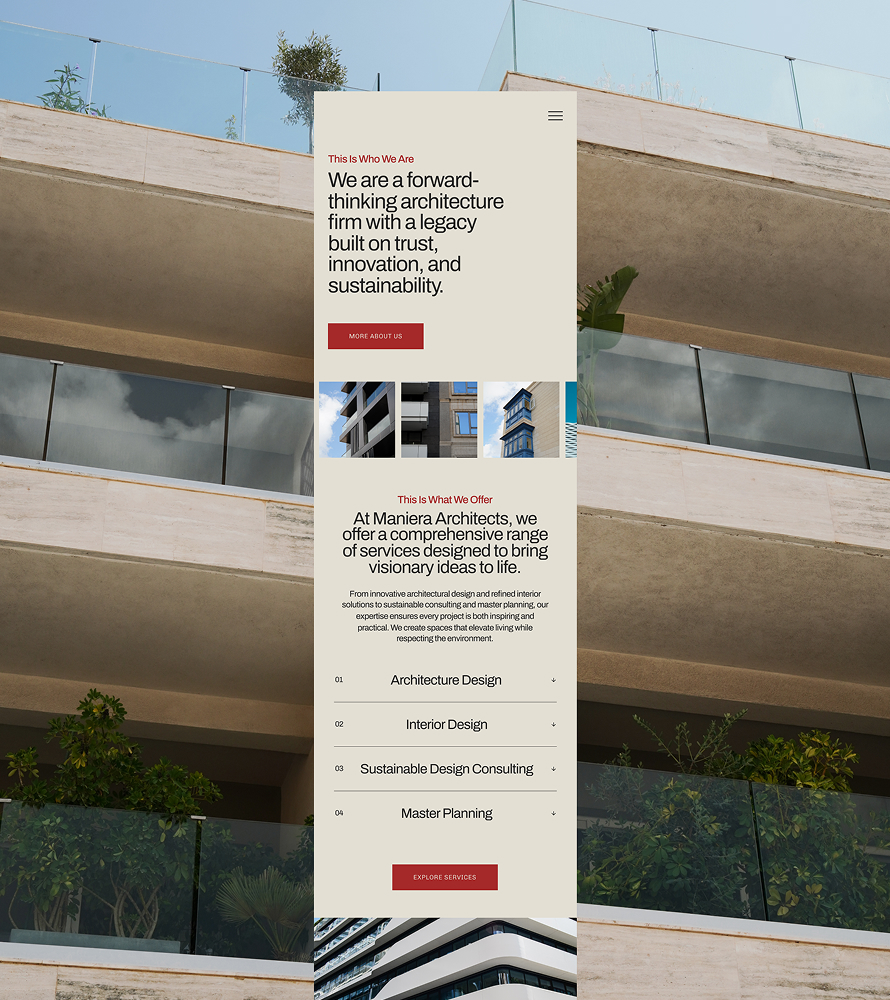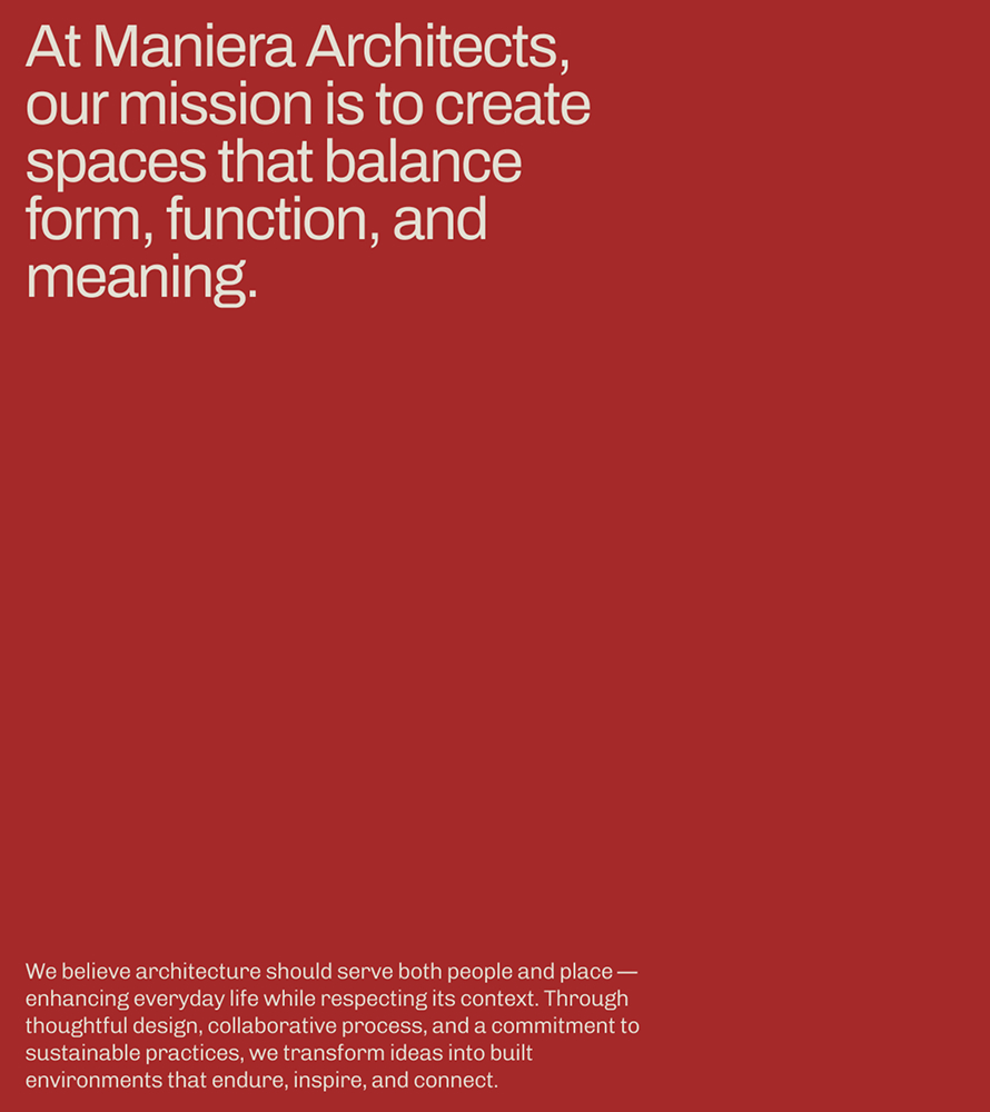 Their challenge was twofold: articulate a brand narrative that reflected their depth of expertise, purpose, and values, and build a digital presence capable of supporting long-term growth. Maniera Architects needed an identity and platform that not only clarified who they are, but also resonated with a growing diverse audience – supporting private developers, project collaborators, local communities, and the broader public.