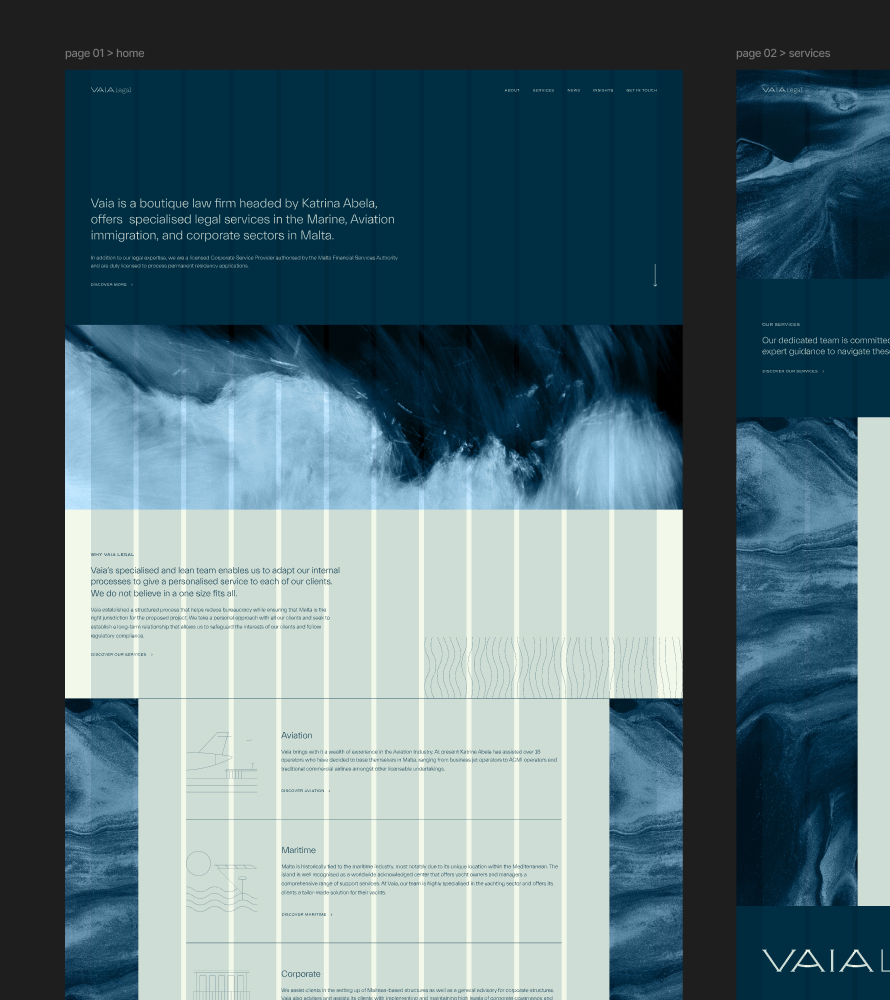 The challenge was twofold. First, to improve usability by making the firm’s services and related insights easier to understand and explore. Second, to reposition Vaia Legal for a more corporate audience, ensuring the website communicated confidence, structure, and credibility from the first interaction.